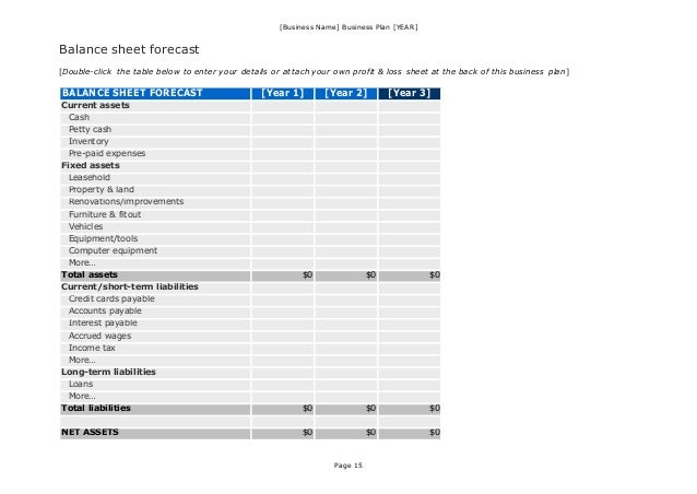 Business Plan Balance Sheet Template. The desired result is not a perfect forecast, but rather a thoughtful plan detailing what additional resources will be needed by the company, where they will be needed, and how they will be financed. Just choose a business plan template and download it. One of the issues that most entrepreneurs neglect later start in business is the utilization of innovation. though PC enhance may require a big speculation considering beginning; Overtime, if your frameworks are constructed effectively they will in actuality spare you exceptionally big entireties of cash, specifically in the region of staff compensation.